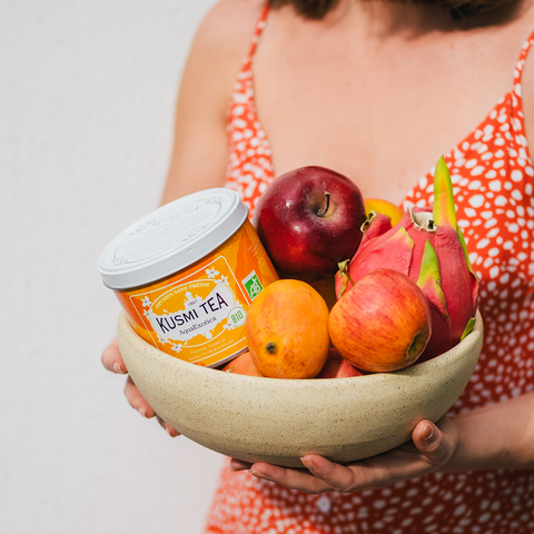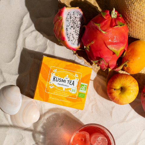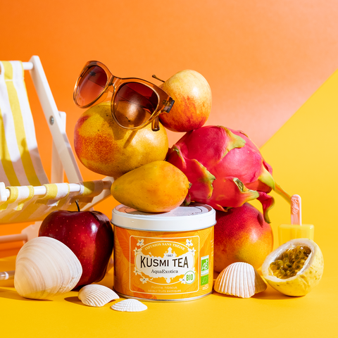 南国フルーツのエキゾチックな香りに包まれる、バラ色のフレーバーティー