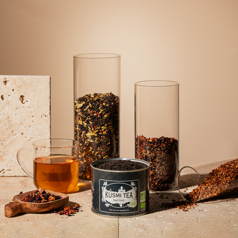 厳選した茶葉のブレンドをベースに、シチリア島産の高品質な天然ベルガモットオイルをまとわせたクラシックなアールグレイ。程よい渋みやコクを感じながらもやわらかで淡い飲み口の紅茶の風味から、ベルガモットの爽快な香りがほんのりと広がり、限りなくソフトな飲み心地です。アールグレイ特有のクセの強い香料の香りが苦手な方や、アールグレイ初心者にもお勧めの、飽きのこない美味しさです。