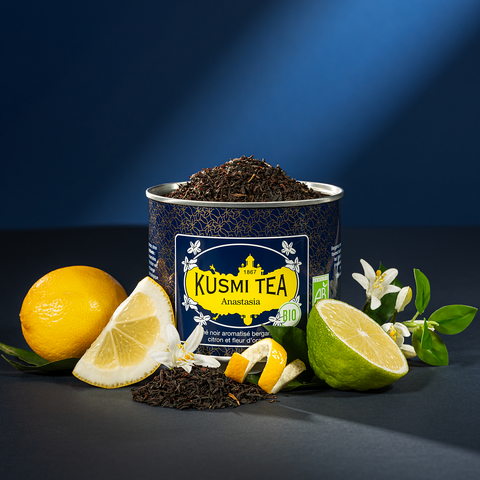 ブラックティーにベルガモット、レモン、ライム、オレンジマンダリンの香りをブレンド。メゾンの創業者が娘の誕生を記念して発表た、クスミティーで最も歴史あるフレーバーのひとつ。