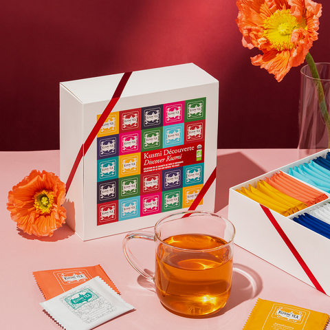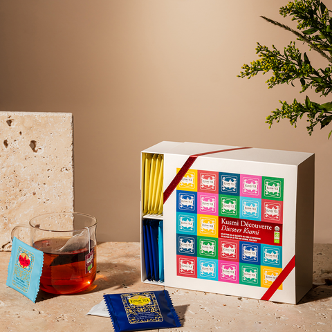 一番人気の「アナスタシア」から、白茶版に進化した「ホワイトアナスタシア」、ハイビスカスベースのフルーツティーまで、メゾン創業者自らブレンドを手掛けたクラシックなフレーバーから、意欲的でモダンなフレーバーまで、クスミティーの新旧の歴史がたっぷりと詰まったティーバッグのアソートメント。ギフト映えするスタイリッシュでエレガントなコフレは、宝箱を開ける時のようなワクワク感を演出します。
