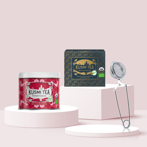 王道のブラックティーと、本格的なティータイムを叶える便利なアイテムが入った、クスミティーの魅力を存分にお楽しみいただける大変お得なセットです。