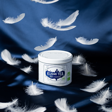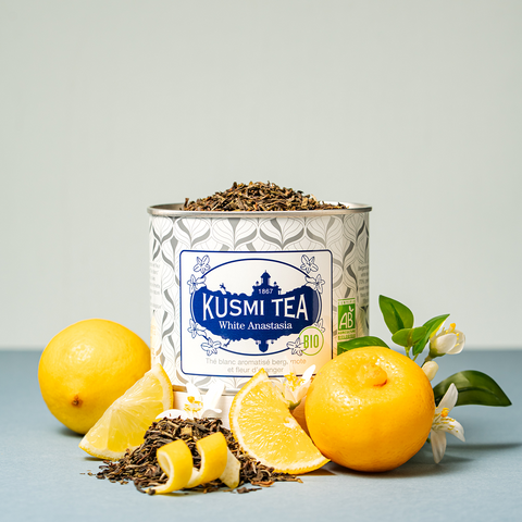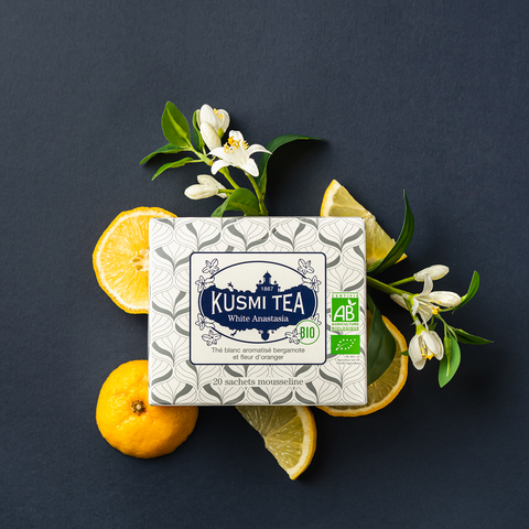 メゾン生誕100年の記念に、「アナスタシア」を再解釈して誕生したこのお茶は、洗練を追求した風味が魅力。白い産毛に覆われた新芽のみを用いたホワイトティー(白茶)と、中国産緑茶のブレンドに、ベルガモットやレモン、オレンジの花のアロマをフレーバリング。白茶特有の繊細ながらも深みのある味わいから、シトラスのきらめく香りがデリケートに広がり、オレンジの花がフローラルに儚げに香ります。